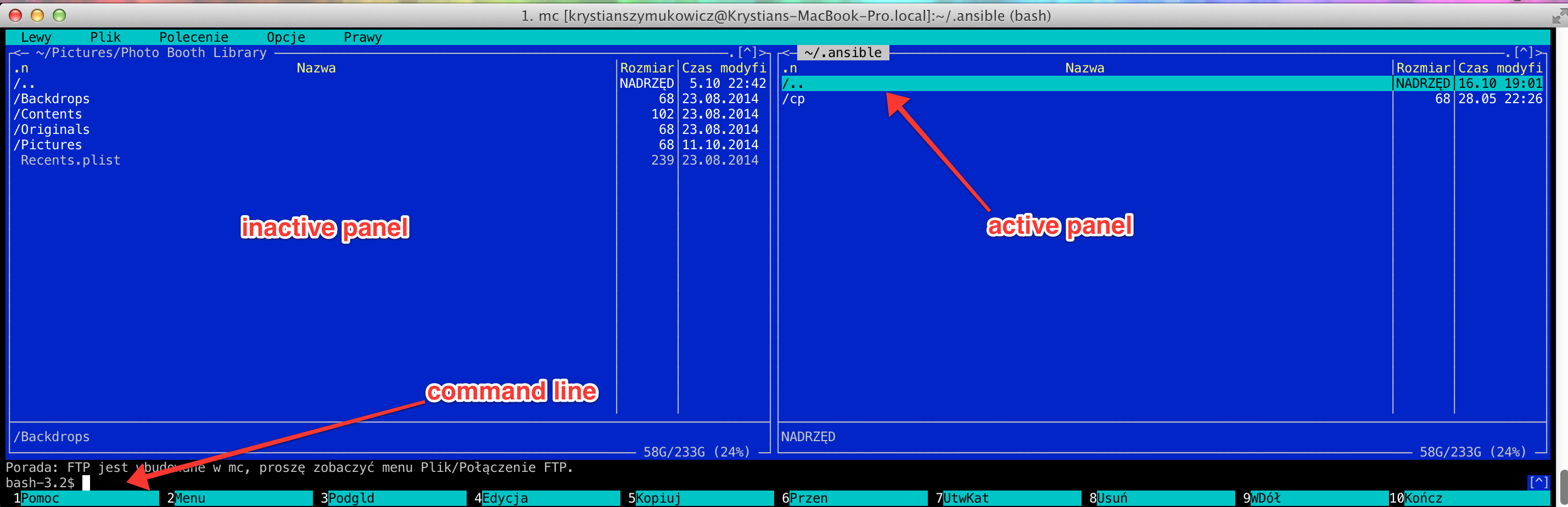Midnight Commander shortcuts in OSX